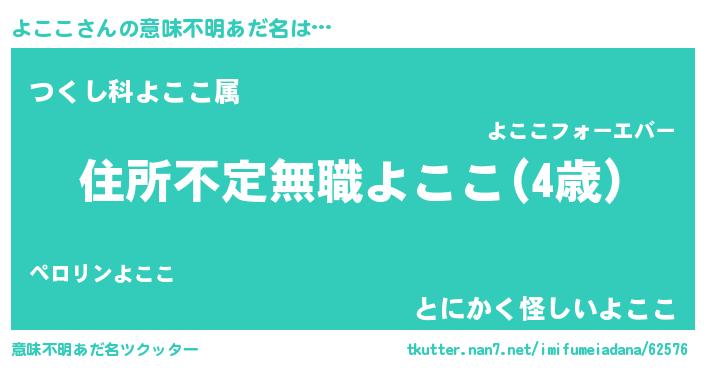 | 男性向けラノベタイトル風あだ名 | 『よここに滅ぼされるだけの簡単なお仕事です』 |