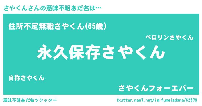 | 女子向けラノベタイトル風あだ名 | 『異世界で失敗しない100のさやくん』 |