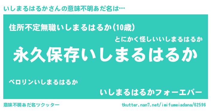 | 胡散臭い通販商品みたいなあだ名 | 『絶対に幸福をもたらす健康食品…その名も「いしまるはるか」』 |