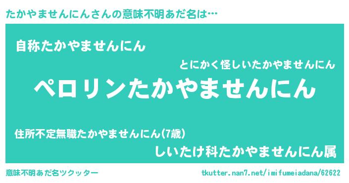 | 欧米人風あだ名 | 『アンジェラ・たかやませんにん』 |