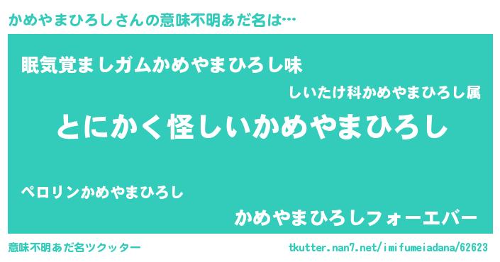 | 男性向けラノベタイトル風あだ名 | 『かめやまひろしの嫁は女の子じゃないと思った?』 |