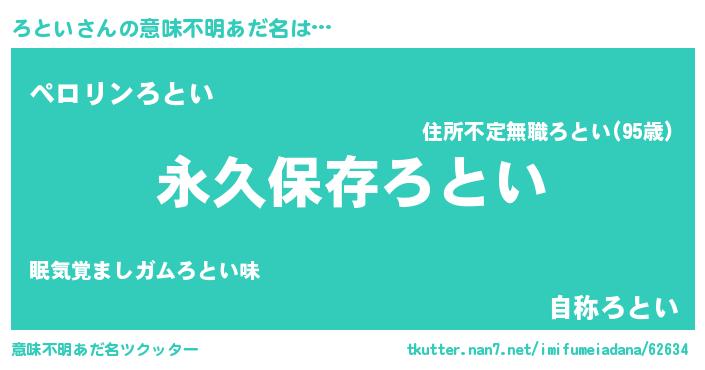 | 男性向けラノベタイトル風あだ名 | 『ろといという概念が存在しない退屈な世界 』 |