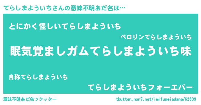 | 男性向けラノベタイトル風あだ名 | 『ノーゲーム・ノーテラシマヨウイチ』 |