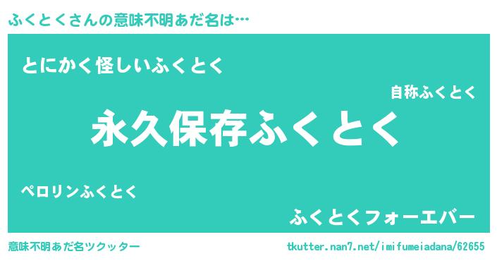 | 男性向けラノベタイトル風あだ名 | 『ふくとくという概念が存在しない退屈な世界 』 |