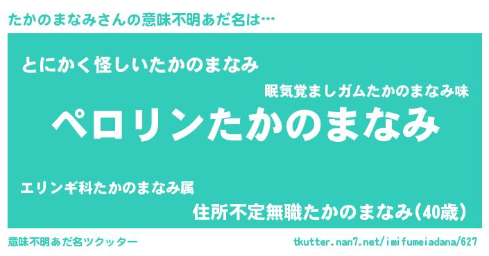 | ヒーロー風カッコイイあだ名 | 『スーパータカノマナミ』『幻影騎士タカ』 |