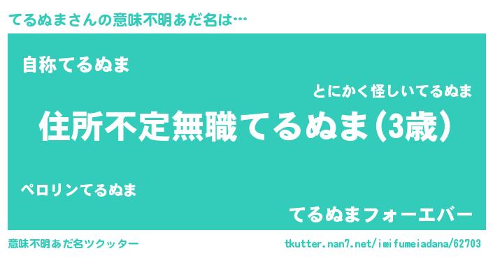 | 男性向けラノベタイトル風あだ名 | 『この素晴らしい世界にてるぬまを!』 |