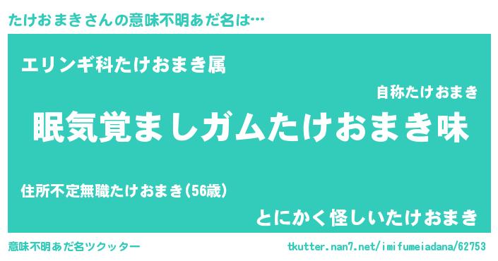 | ヒーロー風カッコイイあだ名 | 『天空の使者たけおまき』『幻影騎士タケ』 |