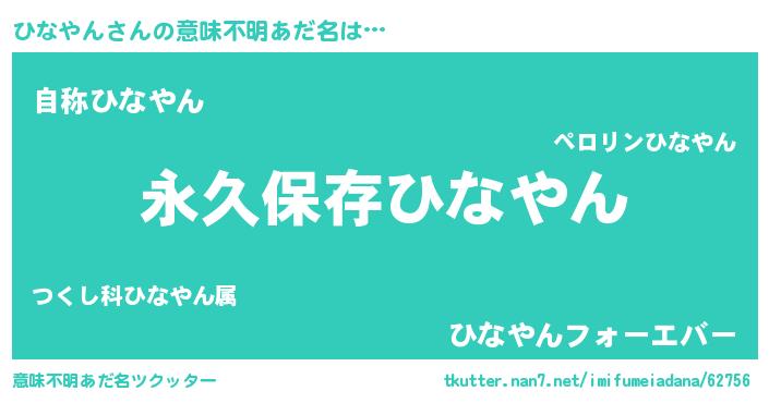 | ファンタジー風あだ名 | 『ヒナディッシュ』『ゼヒナトゥ』 |