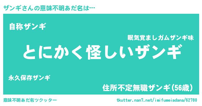 | 女子向けラノベタイトル風あだ名 | 『ザンギの卵を拾いまして』『闇のザンギ』 |