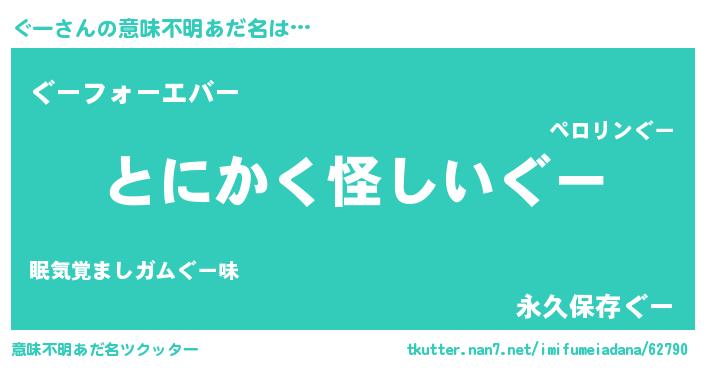 | ポケモン風あだ名 | 『ヒグー』『グーダネ』『ゼニグー』 |