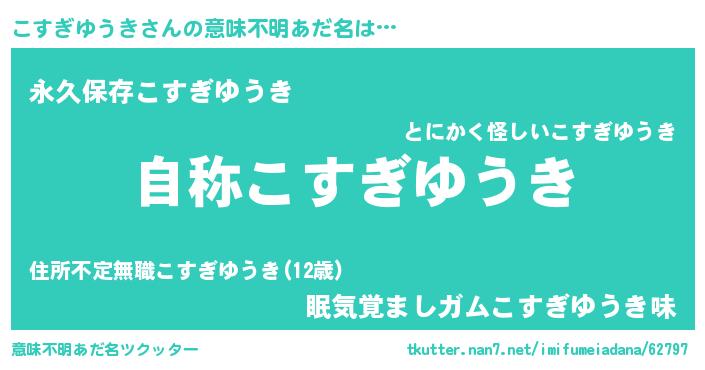 | ヘコむあだ名 | 『こすぎゆうき(遠い目)』『こすを』 |