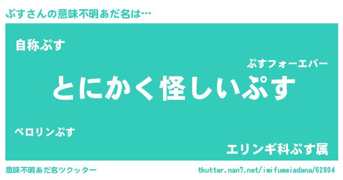 | 男性向けラノベタイトル風あだ名 | 『ぷすの嫁は女の子じゃないと思った?』 |