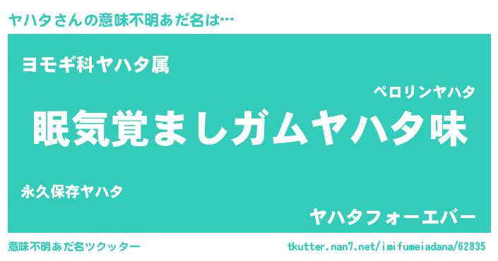| 男性向けラノベタイトル風あだ名 | 『ノーゲーム・ノーヤハタ』 |