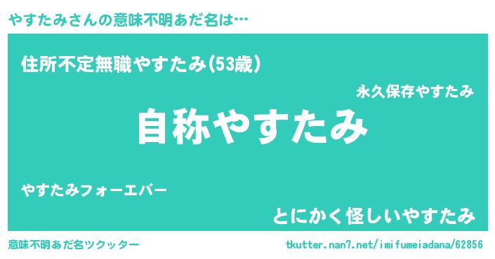 | 欧米人風あだ名 | 『やすたみ・ステッグマイヤー』 |