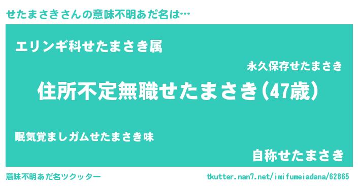 | 恥ずかしいあだ名 | 『セタマサキデラックス』『せたちん』 |