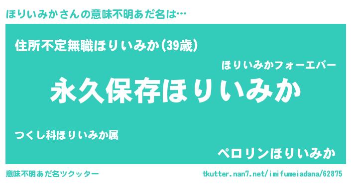 | 胡散臭い通販商品みたいなあだ名 | 『絶対に幸福をもたらす健康食品…その名も「ほりいみか」』 |