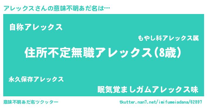| ヒーロー風カッコイイあだ名 | 『仮面アレダー』『最強戦士アレックス』 |