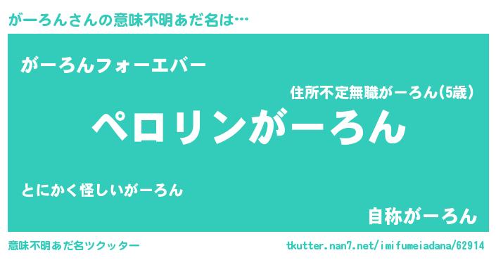 | 胡散臭い通販商品みたいなあだ名 | 『必ず成功する霊験あらたかなお札…その名も「がーろん」』 |
