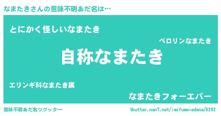 | ヒーロー風カッコイイあだ名 | 『サイバー戦士ナマタキ』『天弓騎士ナマ』 |