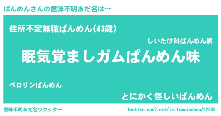 | 欧米人風あだ名 | 『ダニエルぱんめん』『ウサインぱんめん』 |