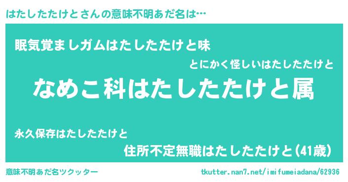 | 料理風あだ名 | 『はたしたたけとごはん』 |