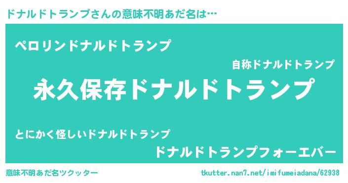 | 女子向けラノベタイトル風あだ名 | 『異世界で失敗しない100のドナルドトランプ』 |