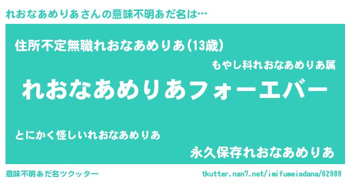 | ヘコむあだ名 | 『豆乳』『れおなあめりあ(笑)』 |