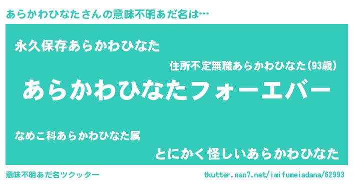 | 欧米人風あだ名 | 『あらかわひなたクリステル』 |