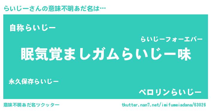 | ヒーロー風カッコイイあだ名 | 『慈愛の使者らいじー』『ネオライジー』 |