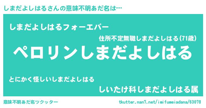 | 肩書あだ名 | 『しまだよしはる御曹司』 |