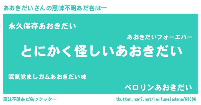 | 男性向けラノベタイトル風あだ名 | 『あおきだいの嫁は女の子じゃないと思った?』 |