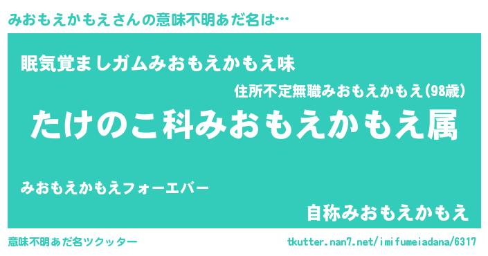 | 料理風あだ名 | 『みおもえかもえごはん』 |
