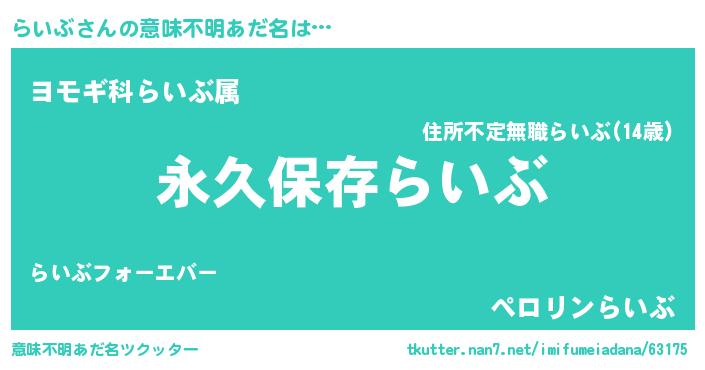 | ヘコむあだ名 | 『らいぶ(爆)』『らいにー』 |