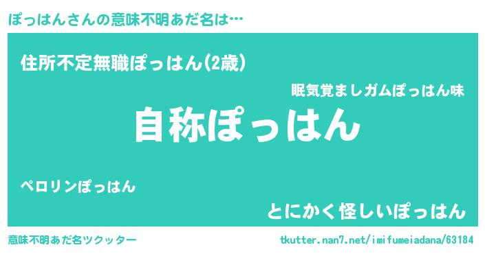 | 男性向けラノベタイトル風あだ名 | 『Re:ぽっはんから始める異世界生活』 |