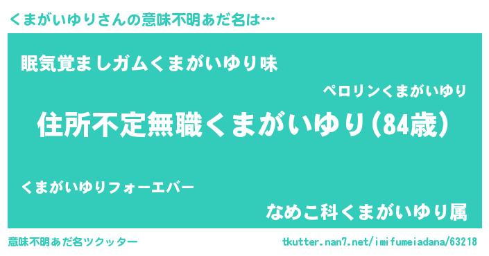 | 欧米人風あだ名 | 『ダレノガレくまがいゆり』 |