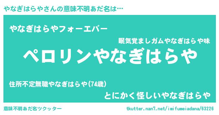 | 胡散臭い通販商品みたいなあだ名 | 『モテモテ間違いなし水晶球…その名も「やなぎはらや」』 |