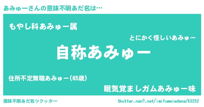 | 女子向けラノベタイトル風あだ名 | 『闇のあみゅー』『死神あみゅーの再婚』 |