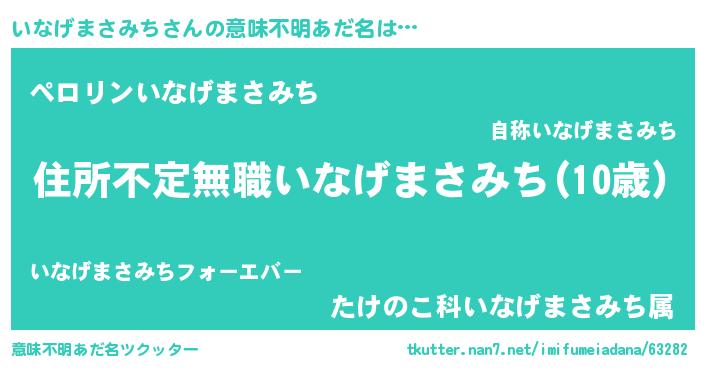 | 男性向けラノベタイトル風あだ名 | 『魔弾の王といなげまさみち』 |