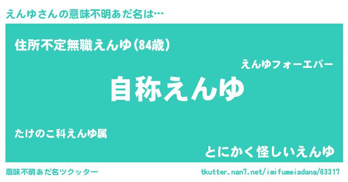 | 男性向けラノベタイトル風あだ名 | 『Re:えんゆから始める異世界生活』 |