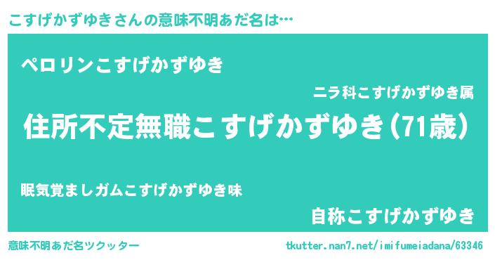 | 欧米人風あだ名 | 『こすげかずゆき・ステッグマイヤー』 |