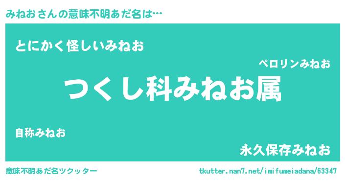 | 女子向けラノベタイトル風あだ名 | 『みねおの玉の輿計画!』 |