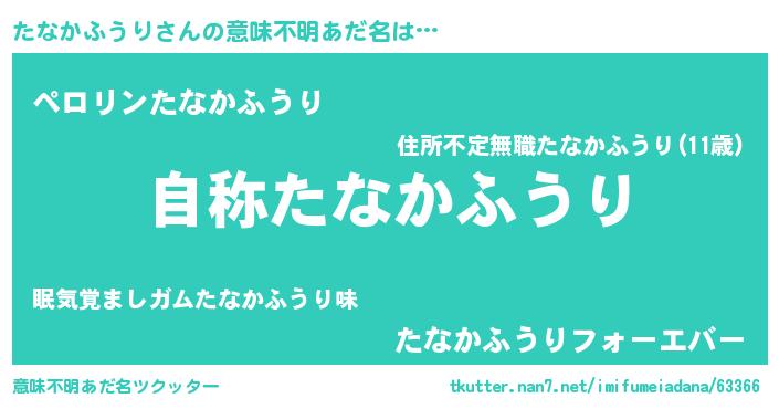 | 男性向けラノベタイトル風あだ名 | 『Re:たなかふうりから始める異世界生活』 |