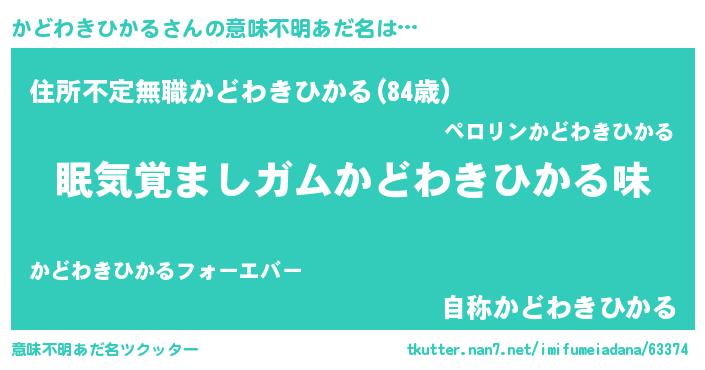 | 男性向けラノベタイトル風あだ名 | 『おまえをオタクにしてやるから、俺をかどわきひかるにしてくれ! 』 |