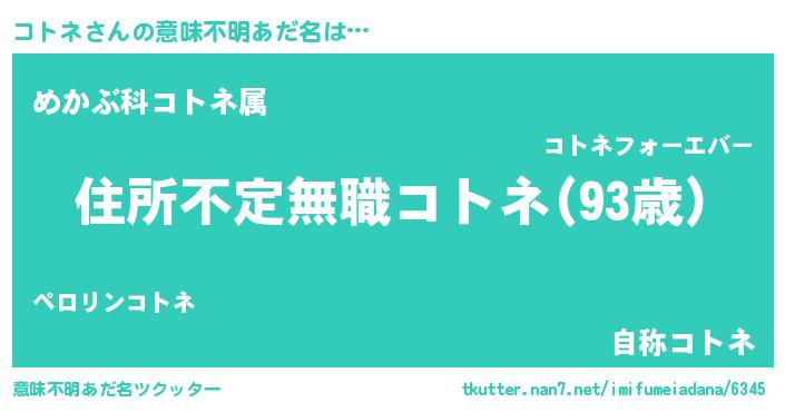 | 男性向けラノベタイトル風あだ名 | 『この素晴らしい世界にコトネを!』 |
