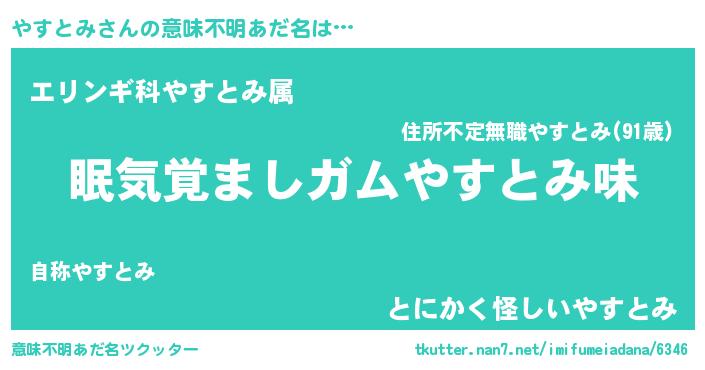 | ヘコむあだ名 | 『やす太郎』『やすとみ(震え声)』 |
