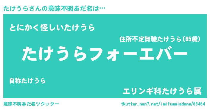 | 女子向けラノベタイトル風あだ名 | 『たけうらの雑貨屋さん』『闇のたけうら』 |