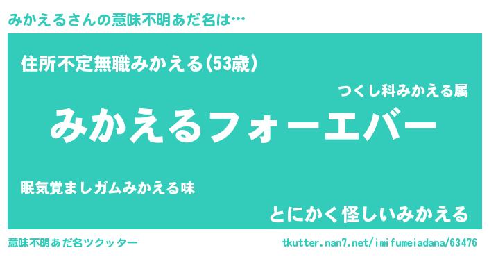 | 欧米人風あだ名 | 『みかえる・ステッグマイヤー』 |