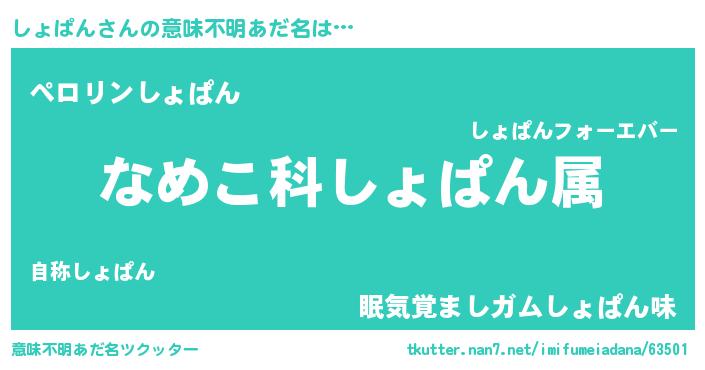 | 男性向けラノベタイトル風あだ名 | 『転生したらしょぱんだった件』 |