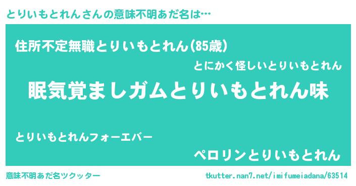 | ヒーロー風カッコイイあだ名 | 『慈愛の使者とりいもとれん』 |
