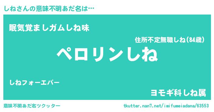 | 男性向けラノベタイトル風あだ名 | 『しねの憂鬱』『魔弾の王としね』 |